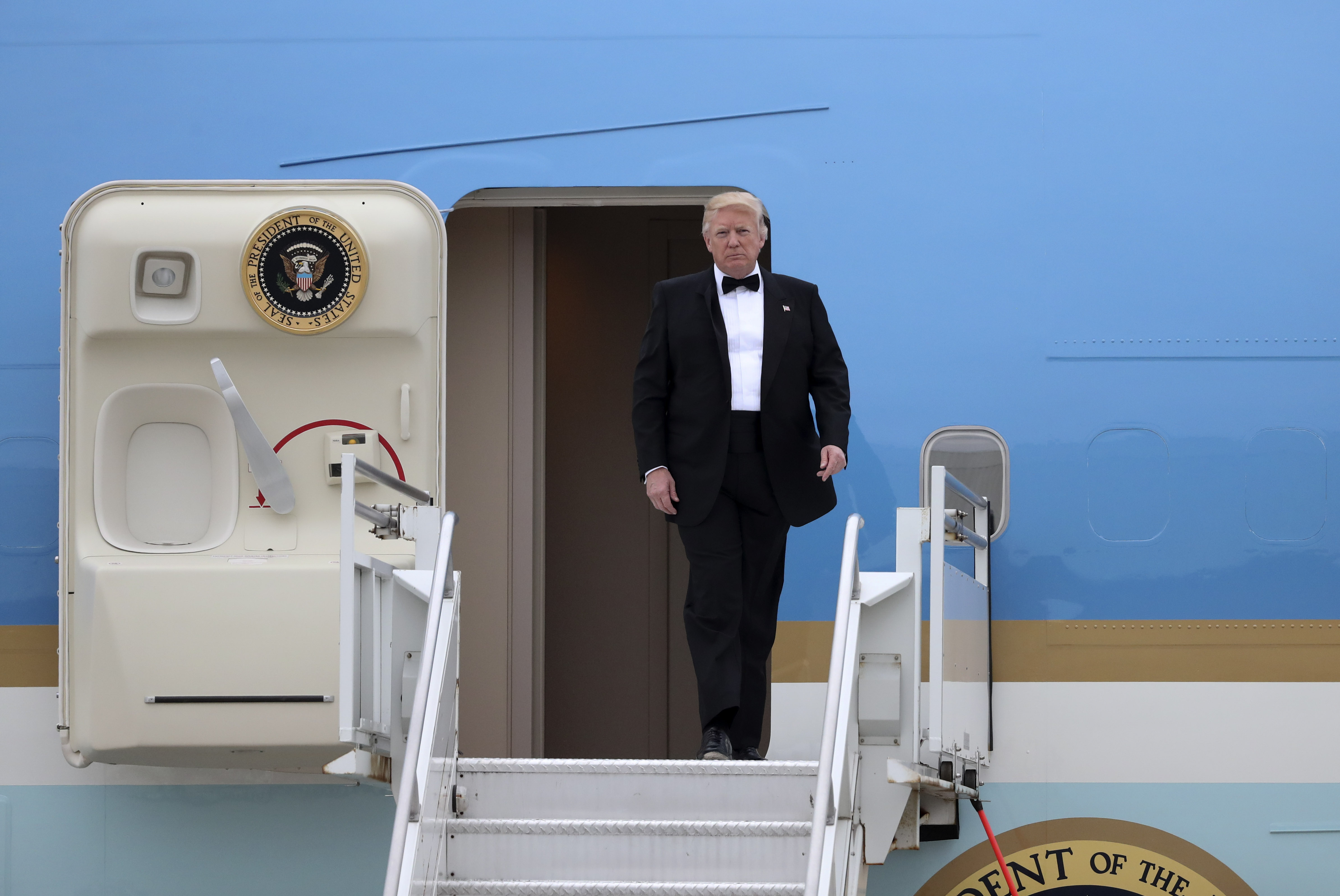 2017年5月4日,在美国纽约肯尼迪机场,美国总统特朗普走出专机“空军一号”。新华社记者王迎摄